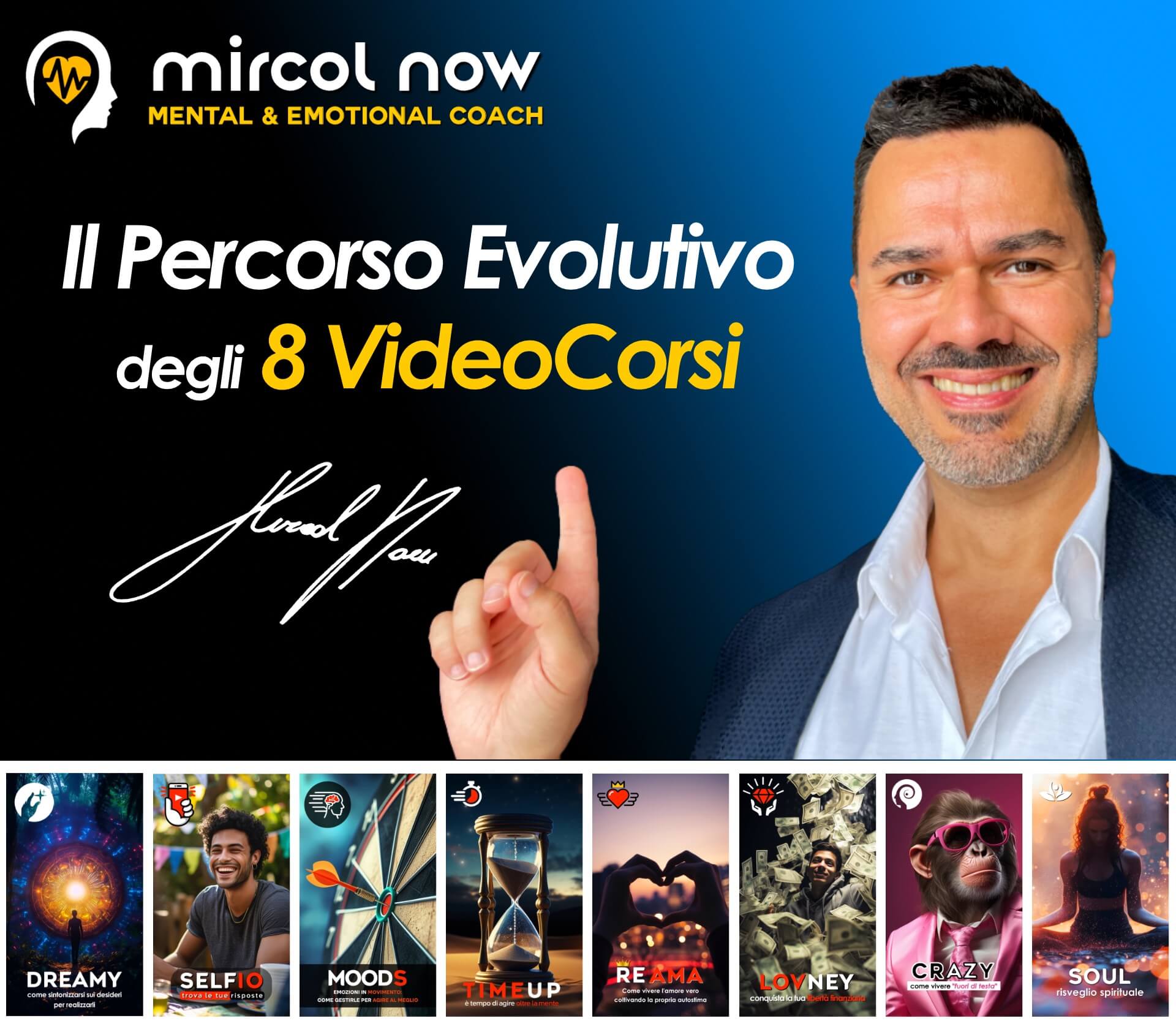 Trasforma le tue paure in energia d’azione attraverso il percorso evolutivo degli 8 video corsi. Ognuno di loro ti permetterà di accrescere la tua consapevolezza, acquisire nuove abilità e a liberarti da quei blocchi che ti impediscono di realizzare ciò che desideri per vivere appieno la vita che sogni.